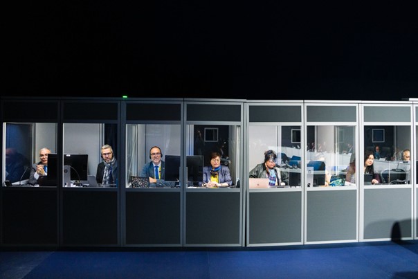 - Location et installation de matériel d’interprétation (cabines, pupitres, casques, micros…)