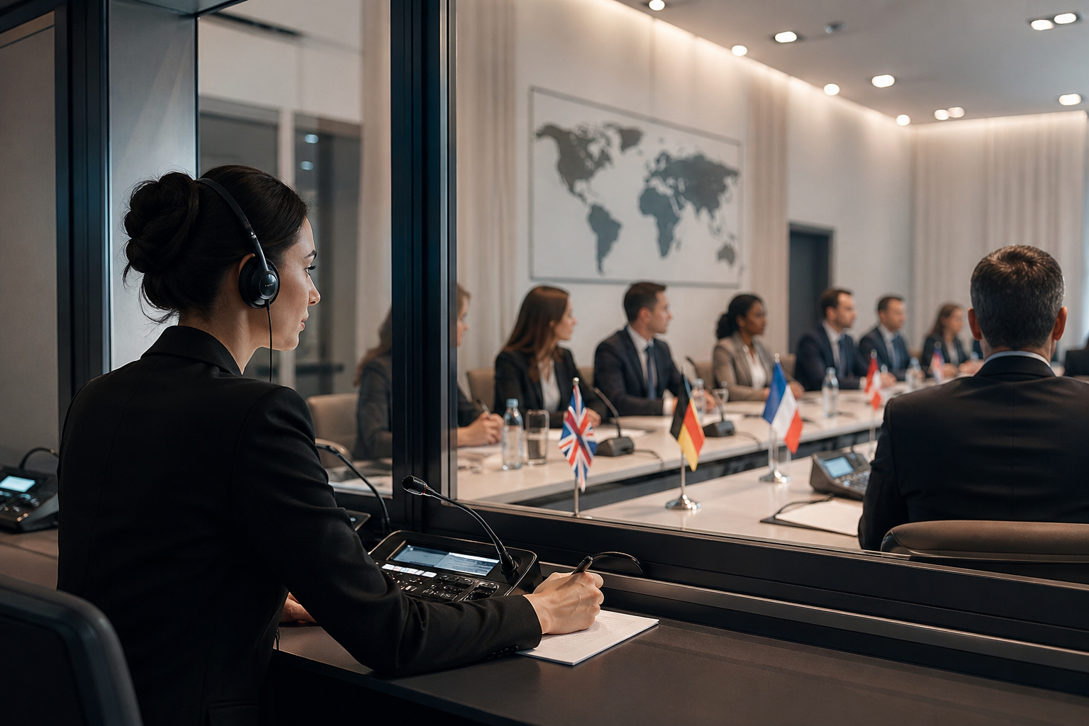 - Réunions diplomatiques, juridiques ou commerciales